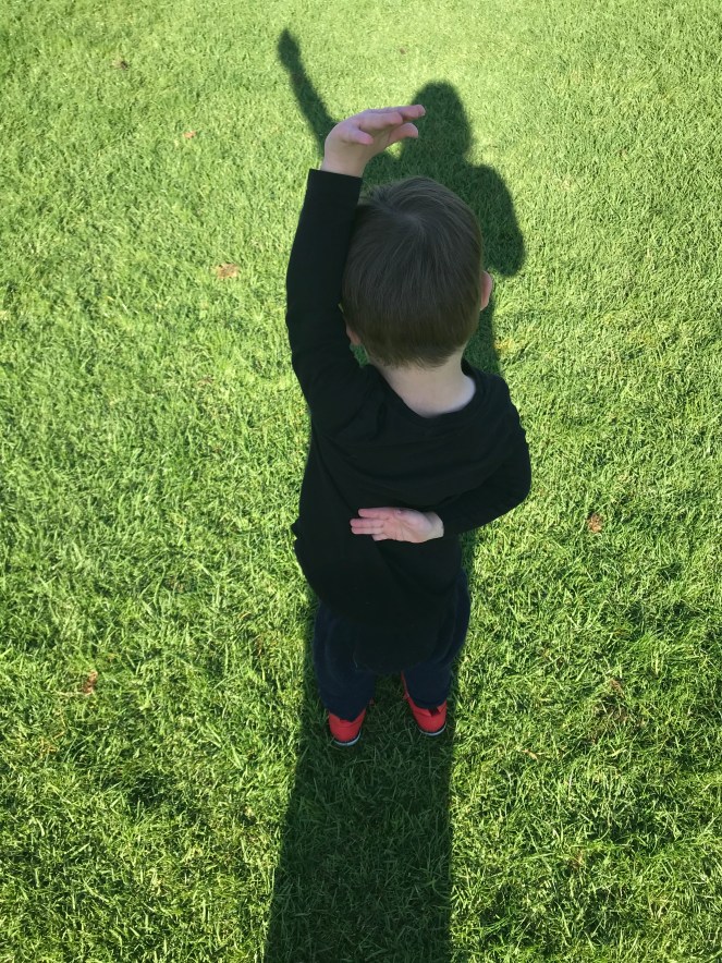 Oscar and I have a new game. One we’ve invented on our daily walk. We play with our shadows. It involves him standing in front of me so his shadow is hidden by mine. I say “where is Oscar?” and then I step away and Oscar’s shadow appears. Oscar points to his shadow and laughs, before ducking back into my shadow and the game begins again.