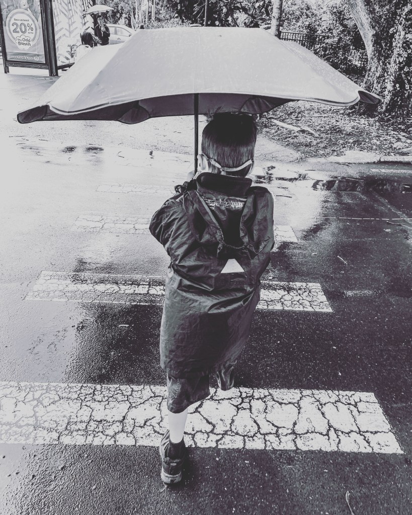 For me and for probably most of us it was yet another day made dreary by the rain. Not for my little chap though – he took so much joy in it. Getting to hold the umbrella himself. Normally the rain bothers him, but today it provided him with an opportunity for fun, a spark of joy – a walk to school with an umbrella.